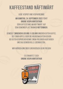 Geschichte – Galerie 2022 Erinnerungen an schöne, gemeinsame Momente in diesem Jahr. ERINNERUNGEN 2022 Jahresende 9. Dezember 2022 Herbstfest 7. Oktober 2022 Kafistand am Näftimärt 24. September 2022 Teilnahme am Vespa-Treff Rorschach 11. September 2022 Ladiesausfahrt 21. August 2022 Sommerfest 8. Juli 2022 Ausfahrt 19. Juni 2022 Zweite GV 6. Mai 2022 Erste Ausfahrt 2022 10. April 2022 Copyright Unione Vespa Winterthur